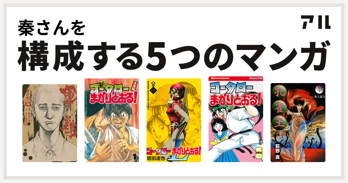 秦さんを構成するマンガは軍鶏 新 コータローまかりとおる コータローまかりとおる L コータローまかりとおる 孔雀王 私を構成する5つのマンガ アル